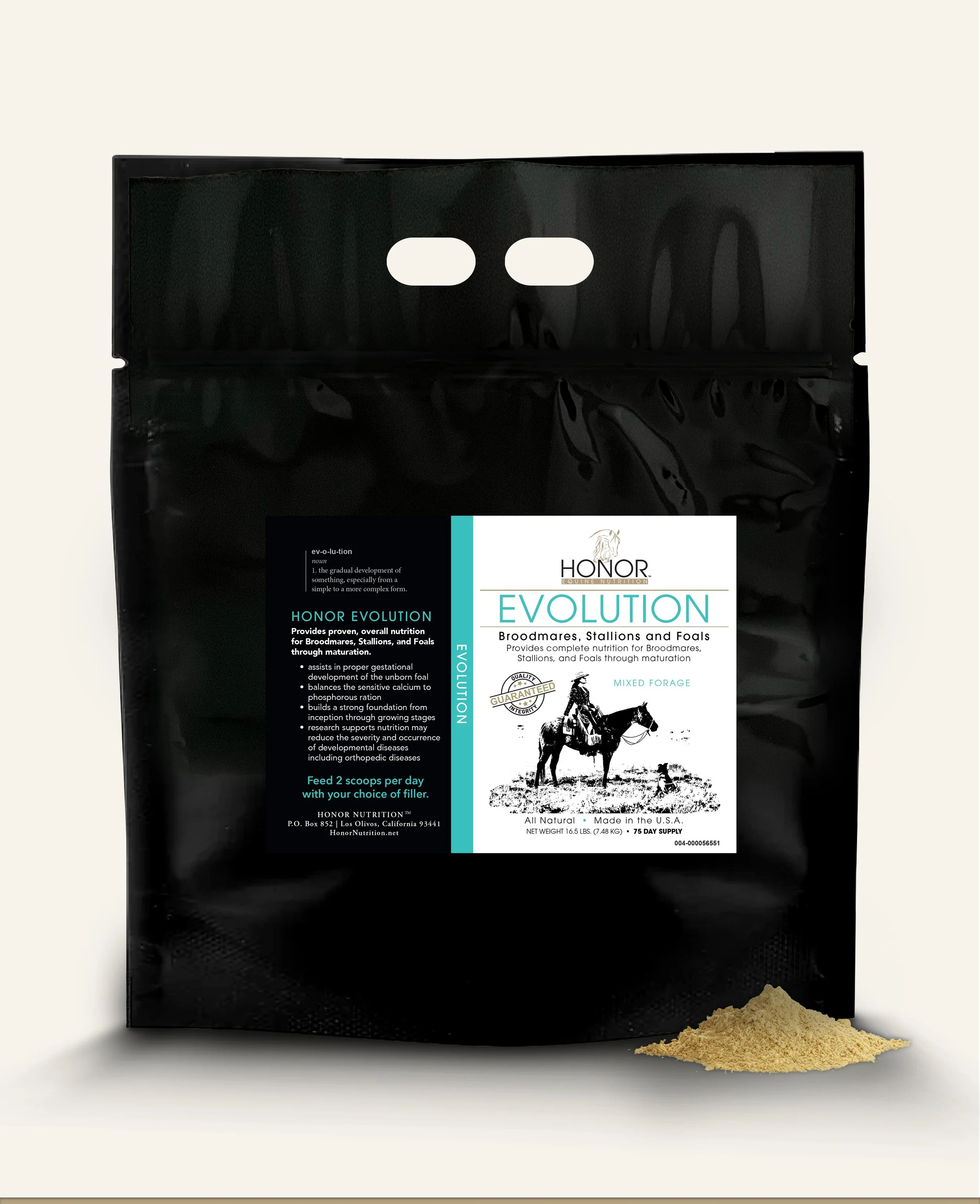 EVOLUTION is a comprehensive supplement for broodmares, stallions, and foals through growth to maturity. Offered in two forage-specific formulas to accommodate the critical Calcium-to-Phosphorus ratio essential for healthy development. Research shows proper nutrition can help reduce developmental diseases. Since nutrition is the one factor you control, we’ve got you covered. -