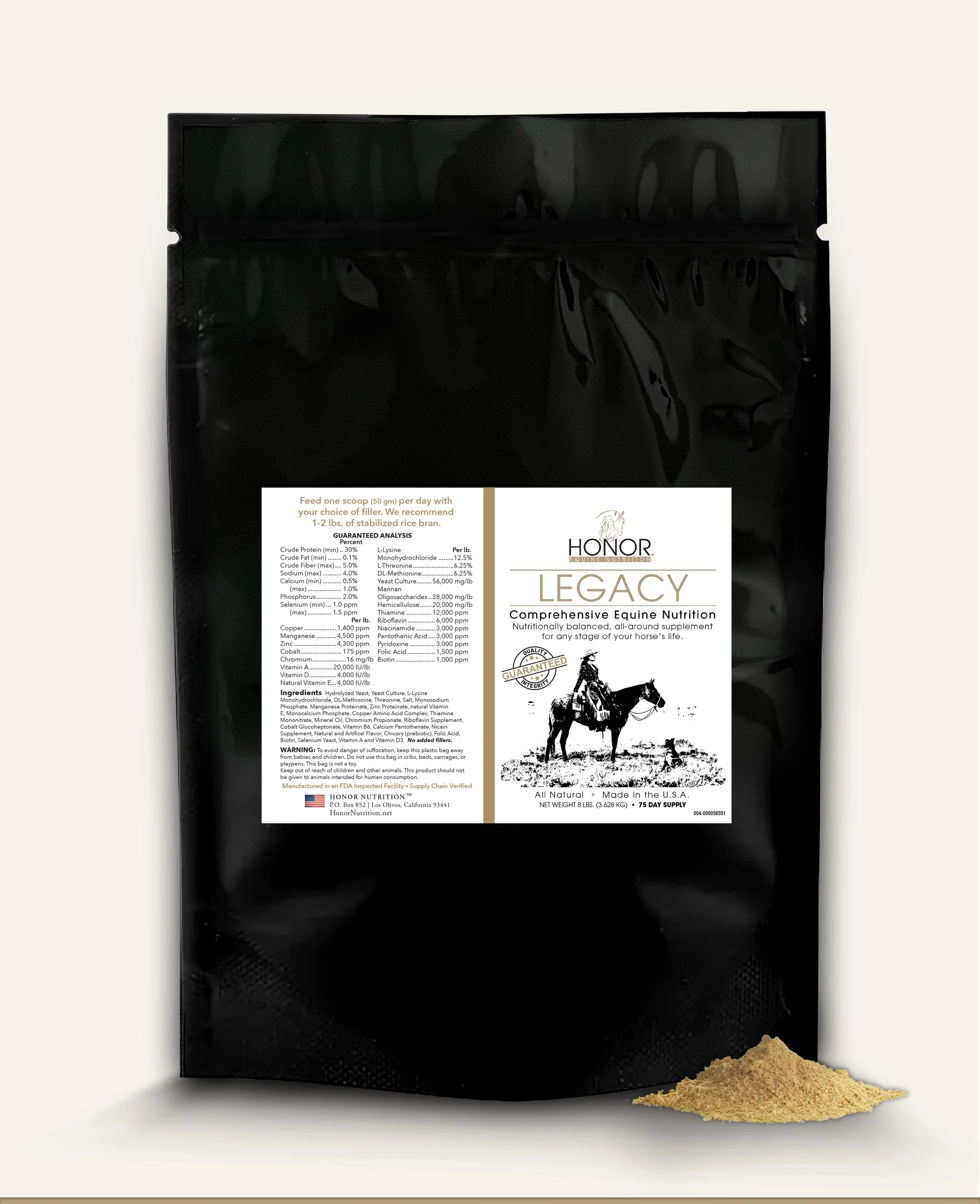LEGACY is a balanced formulation delivering complete nutrition, all in one scoop. It’s designed to enhance your horse’s overall health with essential vitamins and minerals, plus targeted support for joints, hooves, digestion, immune system, respiratory function and more. A legacy isn’t left by chance—it’s built day by day. Honor your horse’s legacy with the power of proper nutrition.