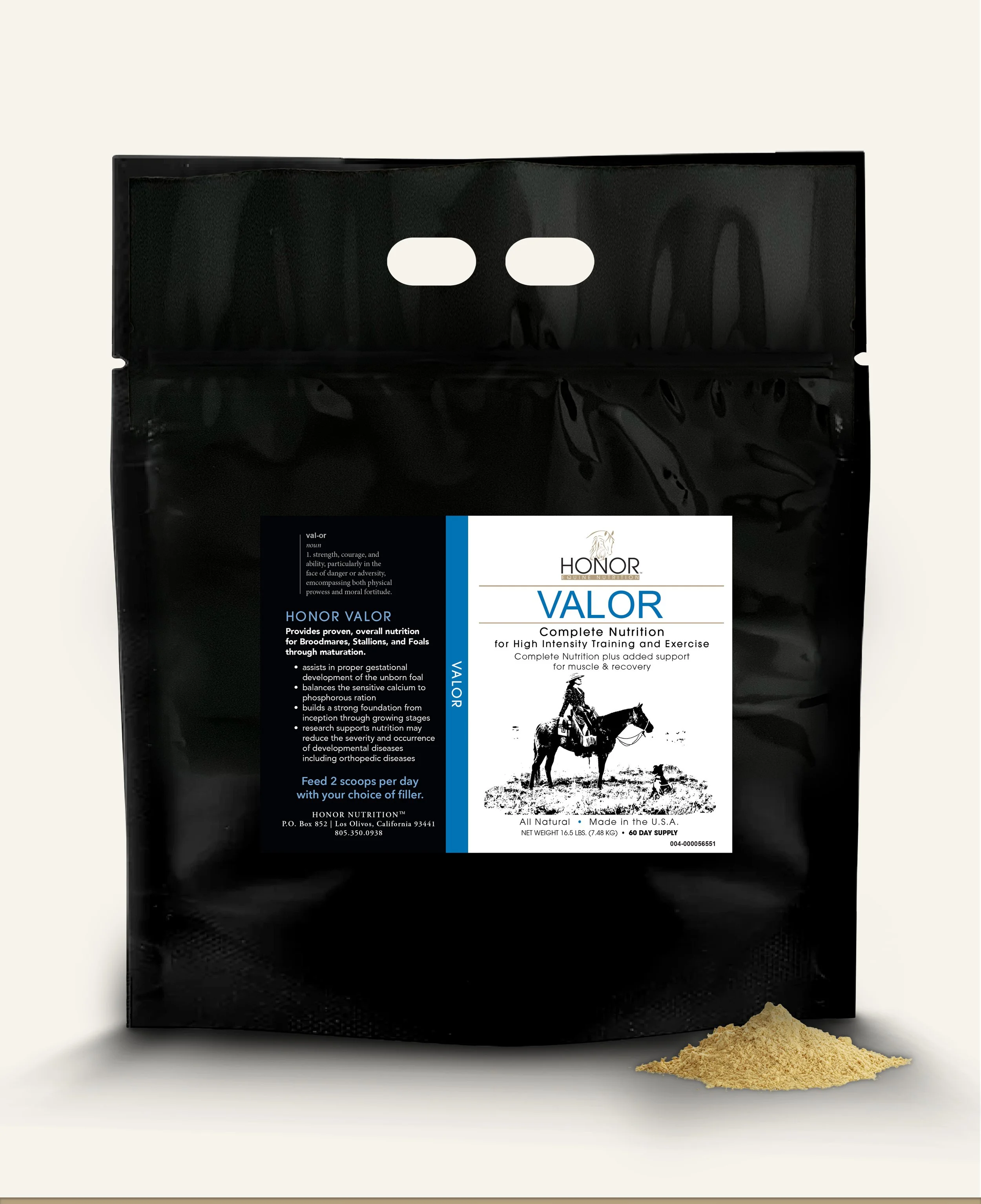 VALOR is a complete, science-driven solution to the nutritional guessing game. Designed to meet the increasing standards of competition, it’s tailored for horses in heavy training, strenuous work, or under consistent stress. Carefully formulated with the correct amino acid profile, it supports recovery, joints, hooves, digestion, immune health, and more. VALOR helps your horse perform at its peak while maintaining long-term wellness. -